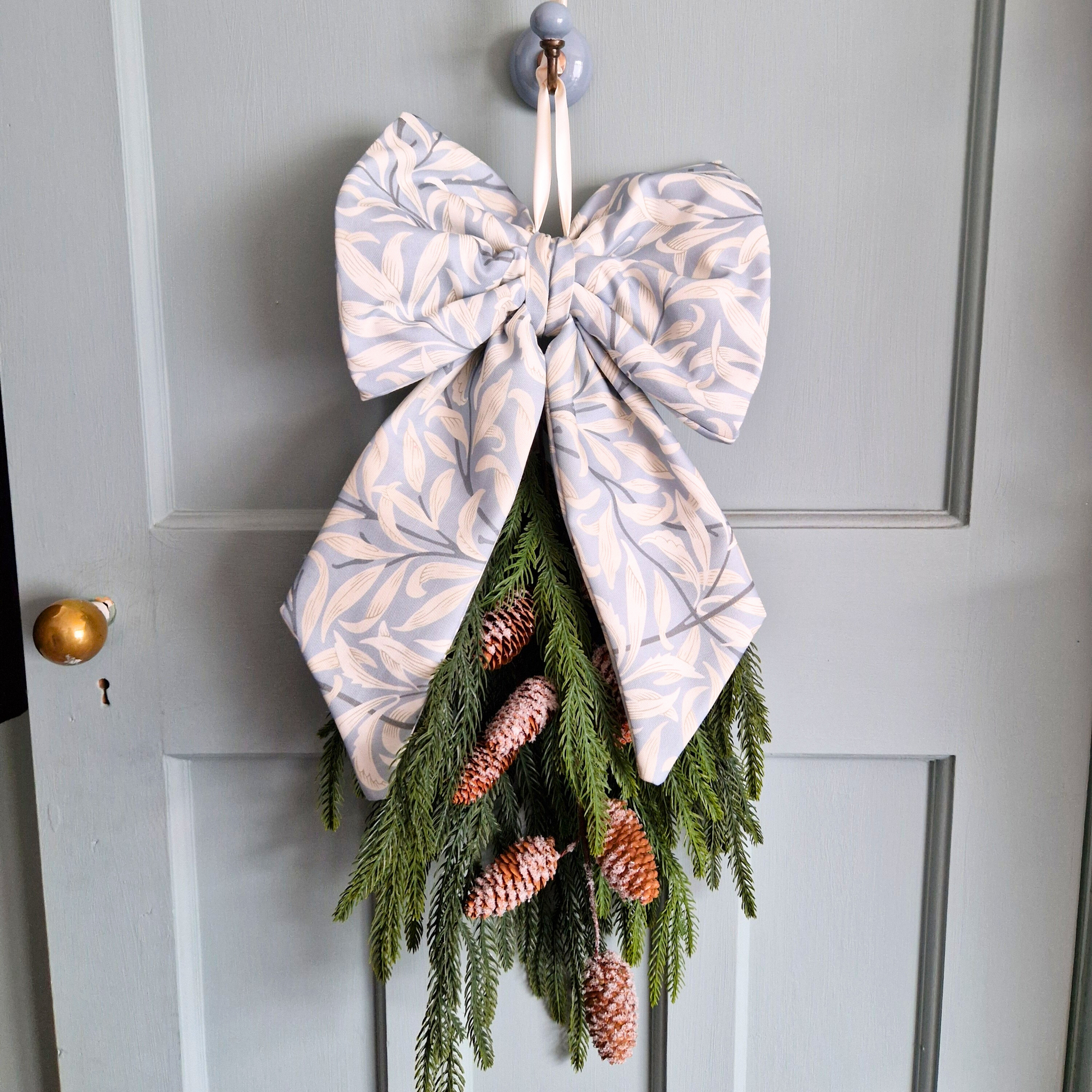 William Morris Large Fabric Bow -Willow Bough  Dove - MADE TO ORDER