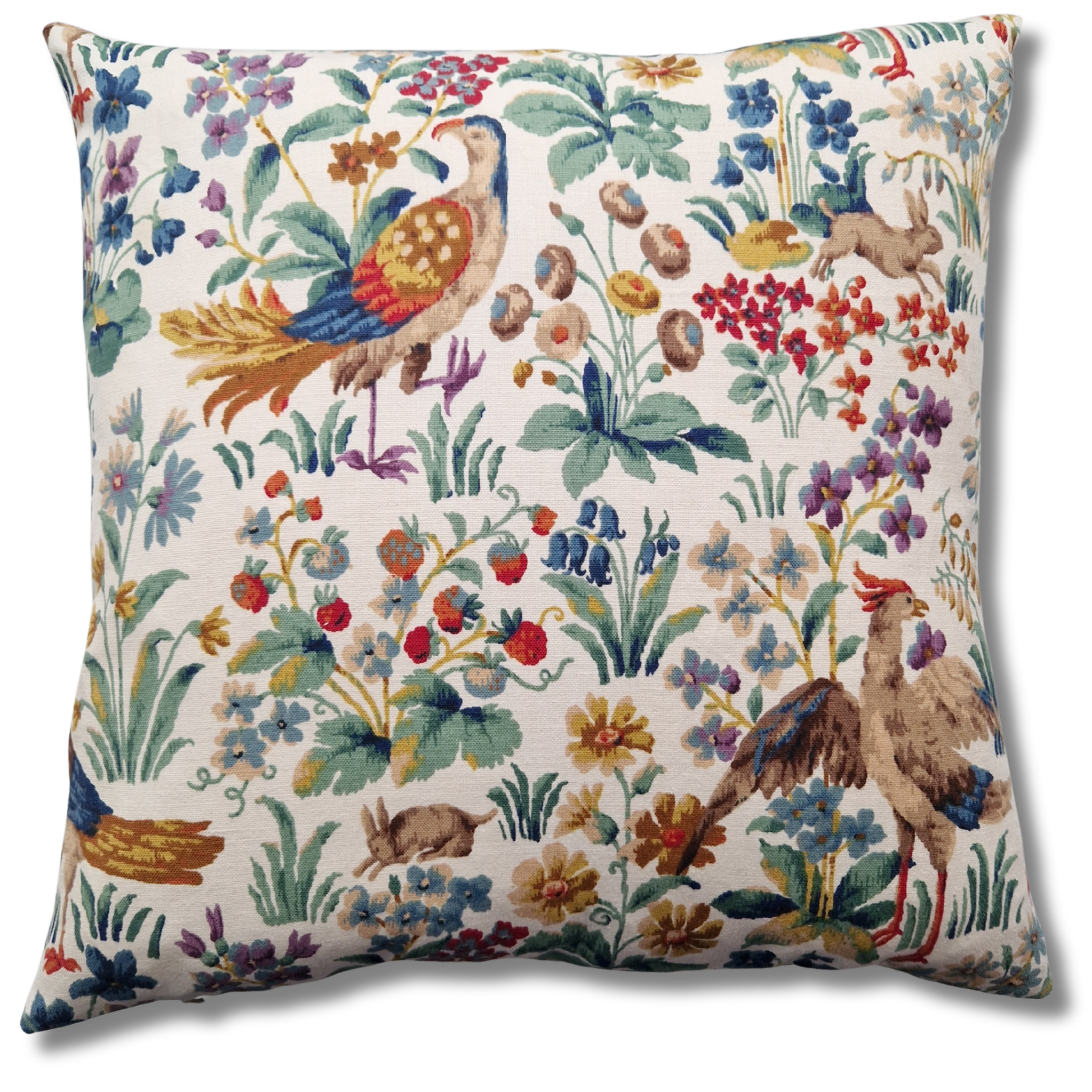 Vintage Sanderson 'Cluny' Countryside Print Cushion Cover